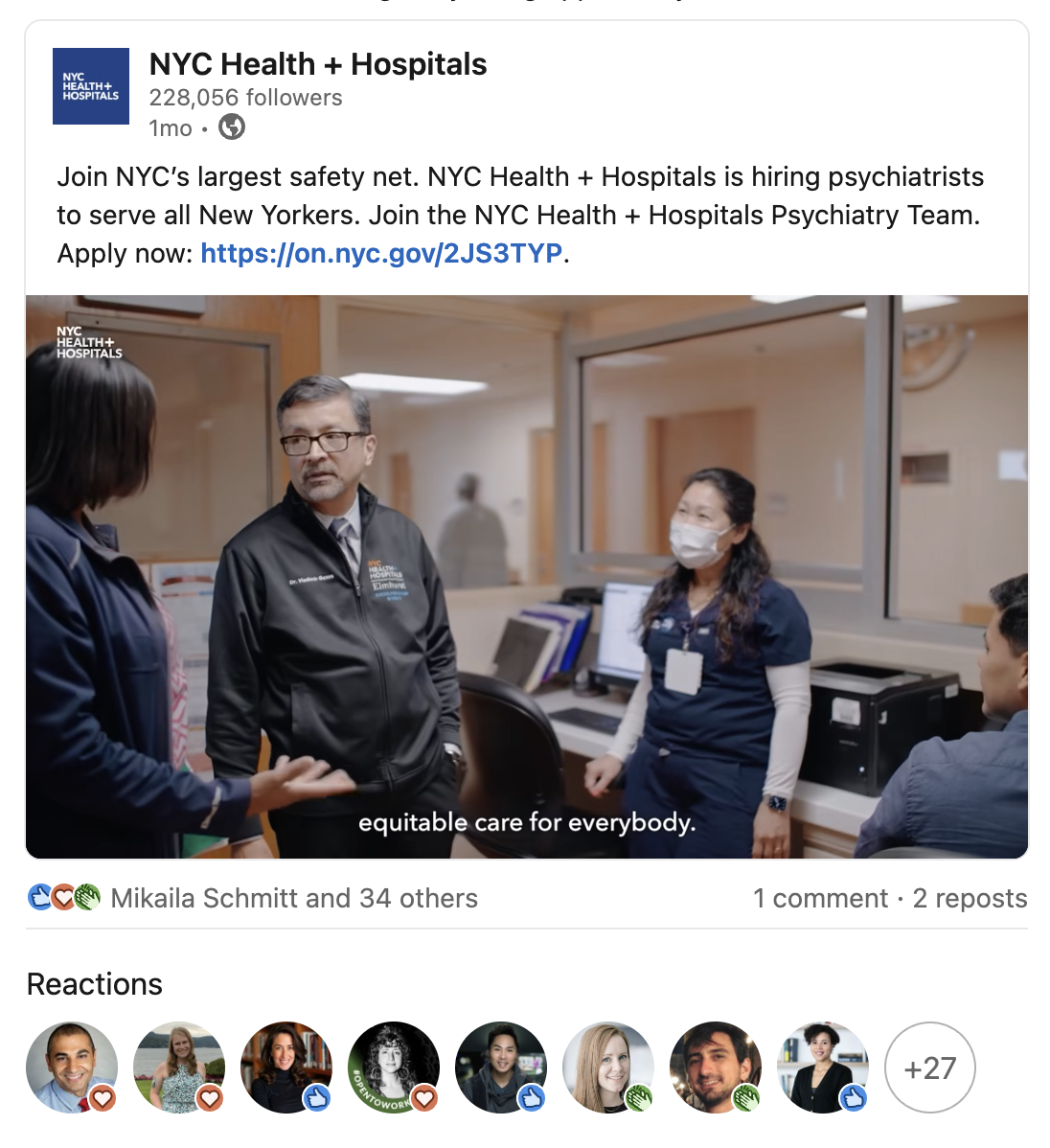 The NYC Health + Hospitals team posted the videos across their platforms during the summer and fall of 2025. Watch the short cut here on Instagram and here on their LinkedIn page.